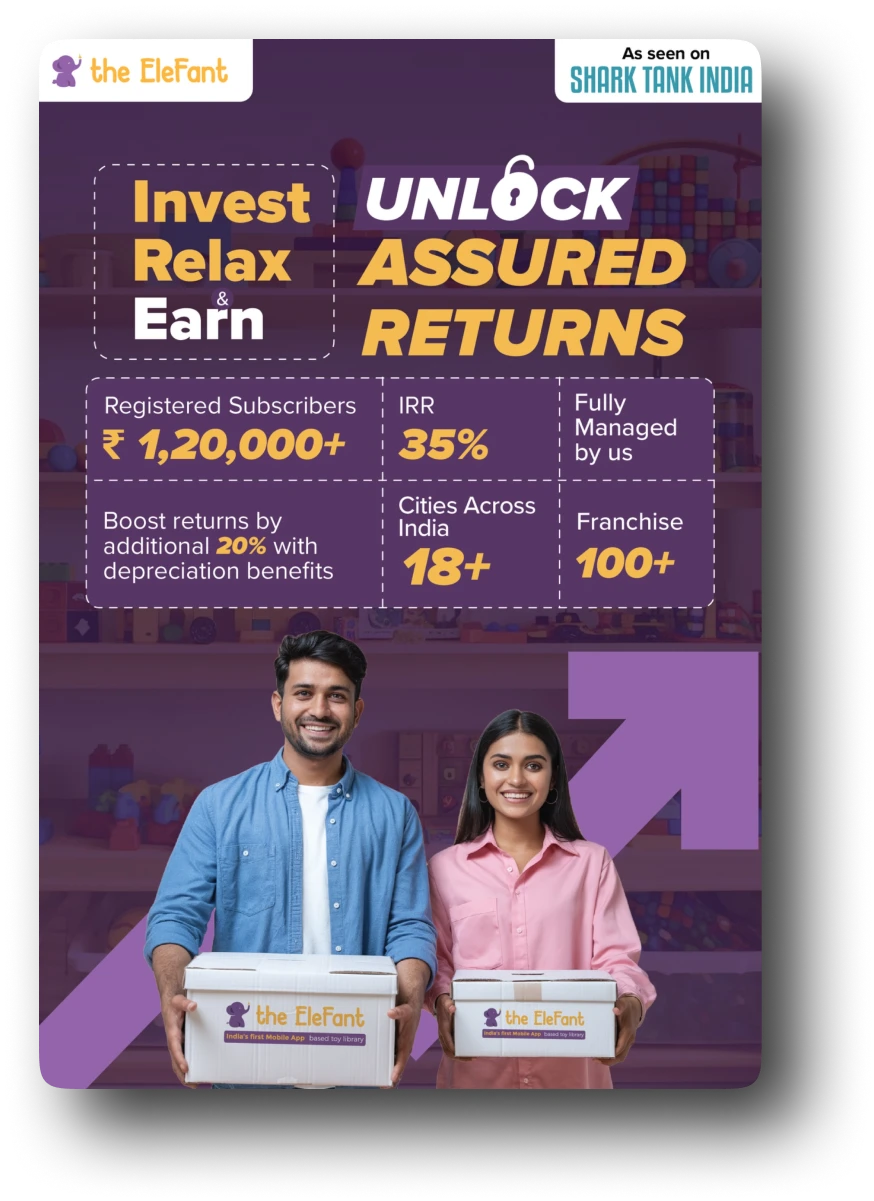 The EleFant is India’s first app-based toy and book subscription library for children aged 0–12. It offers curated, educational and STEM-accredited toys and books delivered to families on flexible subscription plans. Parents can easily rotate, return and exchange items, saving money and reducing clutter while ensuring safe, sanitised play. As a partner, you’ll join a proven, fast-growing brand bringing sustainable, high-quality play experiences to families. With strong demand, an established supply chain and marketing support, it’s a turnkey opportunity to build a meaningful, profitable business.